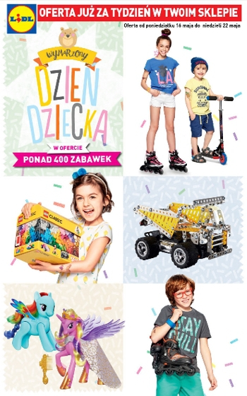 {loadposition linkLidl} Nowa gazetka promocyjna Lidl - "Dzień dziecka". Polecane promocje z gazetki Lidl: Klocki LEGO - 34,99 zł. Keyboard Yamaha PSR-F50 - 279 zł. Perkusja elektroniczna - 169 zł. Oferta ważna od 16.05 do 22.05 lub do…