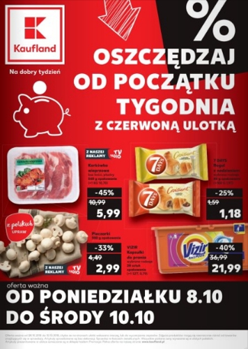 {loadposition linkKaufland} 'Oszczędzaj od początku tygodnia z czerwoną gazetką' - nowa oferta promocyjna sieci marketów Kaufland. Polecane promocje z gazetki Kaufland: Karkówka wieprzowa bez kości w plastrach 560 g - 5,99 zł. Rogal z nadzieniem 7 Days 60 g…