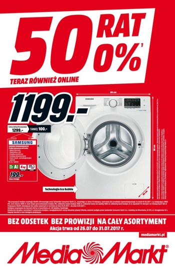 {loadposition linkMediaMarkt} Nowa gazetka promocyjna Media Markt - "50 rat 0%". Polecane promocje z gazetki Media Markt: Pralka Samsung WW60J4060LW/EO - 1199 zł. Zmywarka do zabudowy Whirlpool WI03C236E - 1549 zł. Piekarnik do zabudowy Samsung NV70H5587BB - 1749…