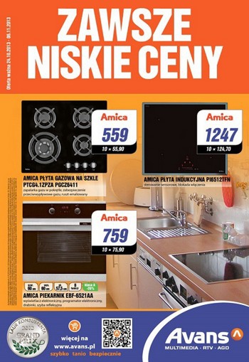 Nowa gazetka promocyjna Avans - "Zawsze niskie ceny". Polecane promocje z gazetki Avans: Płyta gazowa AMICA PGCZ6411 - 559 zł Płyta indukcyjna AMICA PI6512TFN - 1247 zł. Piekarnik AMICA EBF6521AA - 759 zł. Oferta ważna od 24.10…