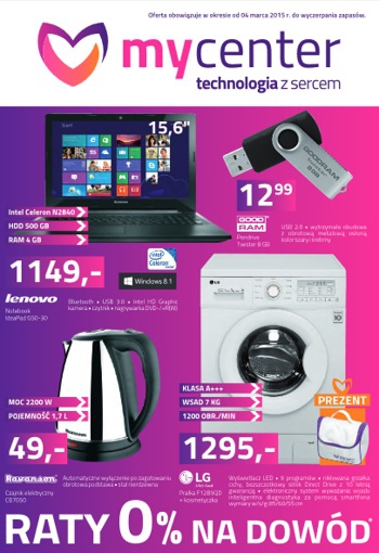 Nowa gazetka promocyjna sieci sklepów MyCenter. Polecane promocje z gazetki MyCenter: Pralka LG F12B9QD + Kosmetyczka MyCenter - 1295 zł. Smartfon Samsung Galaxy A5 - 1599 zł. Piekarnik elektryczny BEKO OIM 22303 X - 799 zł. Płyta gazowa…