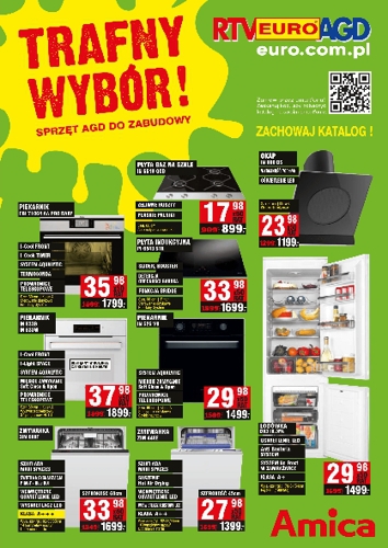 Super oferta na sprzęt AGD do zabudowy w katalogu RTV EURO AGD - "Trafny wybór". Polecane promocje z katalogu RTV EURO AGD: Płyta gazowa na szkle Amica IN 6610 GCB - 899 zł. Okap kominowy Amica IN 600…