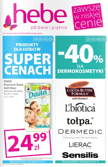 {loadposition linkHebe} Nowa gazetka promocyjna drogerii Hebe - "Zawsze w niskiej cenie". Polecane promocje z gazetki Hebe: Pieluchy dla dzieci Dada Premium Extra Soft Maxi 54 sztuki - 24,99 zł. Balsam do ciała Green Pharmacy 500 ml - 6,99…