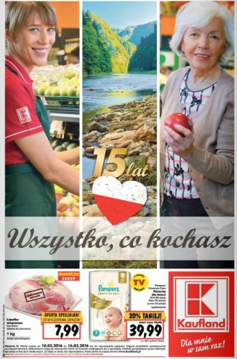 {loadposition linkKaufland} Nowa gazetka promocyjna marketu Kaufland - "Wszystko, co kochasz". Polecane promocje z gazetki Kaufland: Łopatka wieprzowa bez kości 1 kg - 7,99 zł. Pieluchy dla dzieci Pampers Premium Care różne rodzaje - 39,99 zł. Kiełbasa biała parzona…