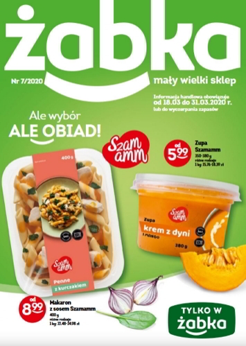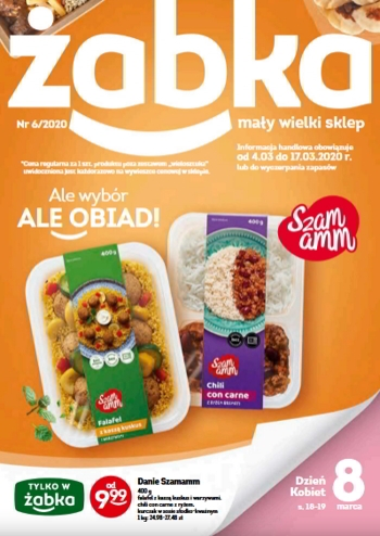 'Ale wybór, ale obiad!' - nowa gazetka promocyjna sieci sklepów Żabka. Polecane promocje z gazetki Żabka: Danie Szamamm 400 g - 9,99 zł. Zupa Szamamm 350 g - 5,99 zł. Pierogi Szamamm 320 g - 7,99 zł. …
