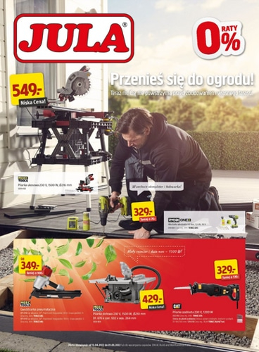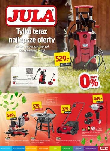 {loadposition linkJula} 'Czas na prace w ogrodzie!' - nowa gazetka promocyjna sieci handlowej Jula. Polecane promocje z gazetki Jula: Płytki podłogowe z drewna akacjowego Hard Head 5 sztuk - 29,99 zł. Pilarka ukosowa Meec 2100 W - 499 zł.…