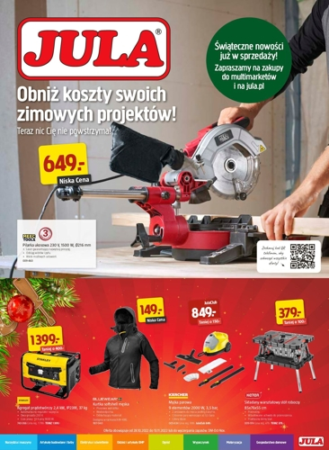 {loadposition linkJula2} 'Obniż koszty swoich zimowych projektów! Teraz nic Cię nie powstrzyma!' - nowa gazetka promocyjna sieci handlowej Jula. Polecane promocje z gazetki Jula: Pilarka ukosowa Meec Tools - 649 zł. Agregat prądotwórczy Stanley - 1399 zł. Kurtka softshell…