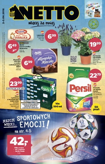 {loadposition linkNetto} Nowa gazetka promocyjna Netto - "Jeszcze więcej... sportowych emocji!". Polecane promocje z gazetki Netto: Piłka nożna - 42 zł. Proszek do prania Persil 3,5 kg - 22,79 zł. Piwo Carlsberg z terminarzem EURO 2016 10x500 ml -…