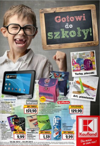 {loadposition linkKaufland} Nowa gazetka promocyjna marketu Kaufland - "Gotowi do szkoły!". Polecane promocje z gazetki Kaufland: Tablet Esperanza Dream Tab 7" - 159,90 zł. Tornister Smart Herlitz - 129,90 zł. Piórnik z wyposażeniem - 9,99 zł. Oferta ważna…