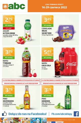 {loadposition linkABC} Nowa gazetka promocyjna sieci sklepów ABC. Polecane promocje z gazetki ABC: Czekoladki Milka Secret Box 14,4 g - 3,49 zł. Napój Tymbark 2 L - 3,39 zł. Piwo Desperados 400 ml - 3,79 zł. Oferta…