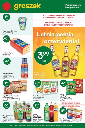 {loadposition linkGroszek} 'Letnia pełnia orzeźwienia' - nowa gazetka promocyjna sieci sklepów Groszek. Polecane promocje z gazetki Groszek: Piwo Desperados 400 ml - 3,99 zł. Jogurt naturalny Zott Primo 180 g - 1,29 zł. Ser Rycki Edam SM Ryki 1…