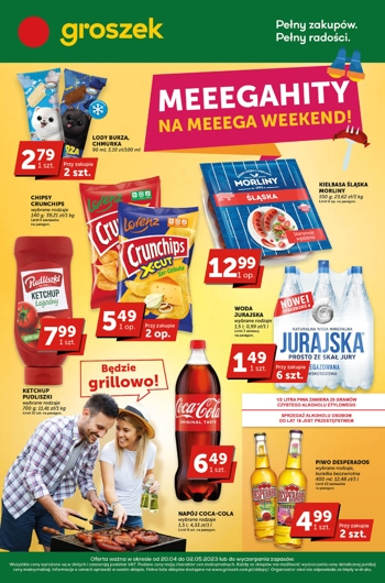 {loadposition linkGroszek} 'Meeegahity na Meeega Weekend!' - nowa gazetka promocyjna sieci sklepów Groszek. Polecane promocje z gazetki Groszek: Lody Chmurka lub Burza Koral 90 ml - 2,79 zł*. Ketchup Pudliszki 700 g - 7,99 zł**. Piwo Desperados 400 ml…