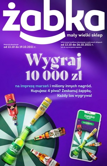 {loadposition linkZabka} 'Wygraj 10 000 zł na imprezę marzeń i miliony innych nagród' - nowa gazetka promocyjna sieci sklepów Żabka. Polecane promocje z gazetki Żabka: Piwo Żywiec 4x500 ml - 10 zł. Piwo Warka Jasne Pełne 4x500 ml -…