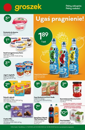 {loadposition linkGroszek} 'Ugaś pragnienie!' - nowa gazetka promocyjna sieci sklepów Groszek. Polecane promocje z gazetki Groszek: Napój Kubuś Waterrr 500 ml - 1,89 zł. Koncentrat pomidorowy Łowicz 190 g - 2,99 zł. Piwo Kasztelan 4x500 ml - 10,79 zł.…