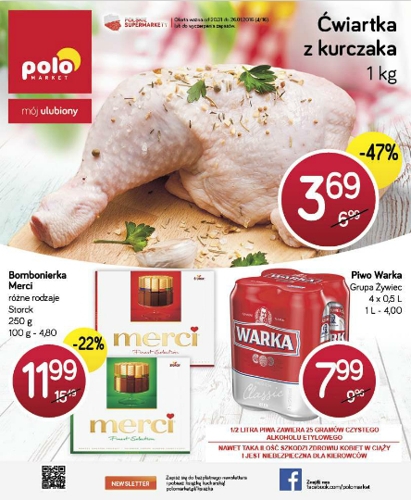 {loadposition linkPoloMarket} Nowa gazetka promocyjna Polo Market. Polecane promocje z gazetki Polo Market: Ćwiartka z kurczaka 1 kg - 9,99 zł. Bombonierka Merci 250 g - 11,99 zł. Piwo Warka 4x500 ml - 7,99 zł. Oferta ważna od…
