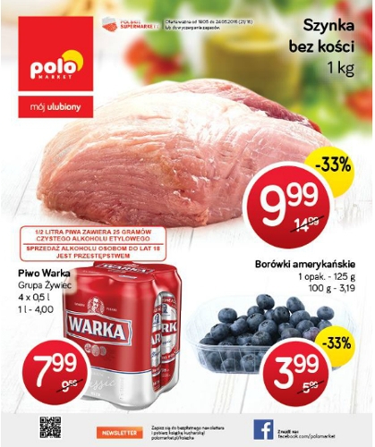 {loadposition linkPoloMarket} Nowa gazetka promocyjna Polo Market. Polecane promocje z gazetki Polo Market: Szynka bez kości 1 kg - 9,99 zł. Piwo Warka 4x500 ml - 7,99 zł. Borówki amerykańskie 125 g - 3,99 zł. Oferta ważna od…