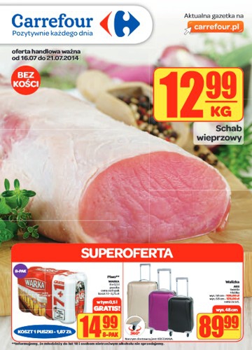 {loadposition linkCarrefour} Nowa gazetka promocyjna sieci handlowej Carrefour. Polecane promocje z gazetki Carrefour: Schab wieprzowy bez kości 1 kg - 12,99 zł. Piwo Warka 8x500 ml - 14,99 zł. Walizka twarda ABS wys. 48 cm - 89,99 zł. …