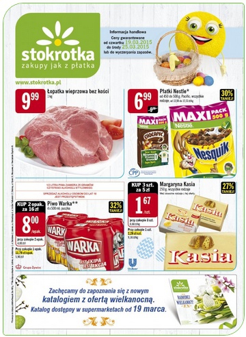 Nowa gazetka promocyjna sieci handlowej Stokrotka. Polecane promocje z gazetki Stokrotka: Łopatka wieprzowa bez kości 1 kg - 9,99 zł. Piwo Warka 8x500 ml - 16 zł. Margaryna Kasia 3x250 g - 5 zł. Oferta ważna od…