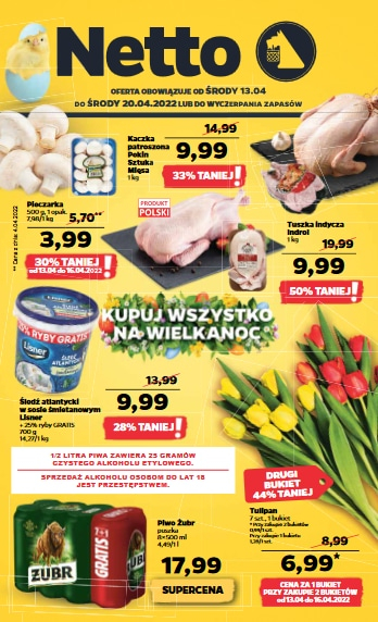{loadposition linkNetto} 'Kupuj wszystko na Wielkanoc' - nowa gazetka promocyjna sieci sklepów Netto. Polecane promocje z gazetki Netto: Pieczarki 500 g - 3,99 zł*. Śledź atlantycki w sosie śmietanowym Lisner 700 g - 9,99 zł. Piwo Żubr 8x500 ml…