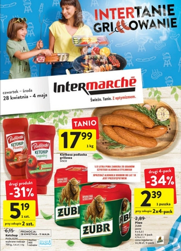 {loadposition linkIntermarche} 'Intertanie grillowanie' - nowa gazetka promocyjna sieci sklepów Intermarche Polecane promocje z gazetki Intermarche: Kiełbasa podlaska grillowa Sisco 1 kg - 17,99 zł. Ketchup Pudliszki 2x700 g - 10,38 zł. Piwo Żubr 8x500 ml - 19,08 zł.…
