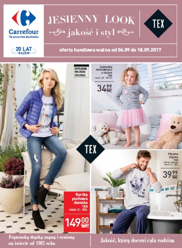{loadposition linkCarrefour} Nowa gazetka promocyjna sieci sklepów Carrefour - "Jesienny look". Polecane promocje z gazetki Carrefour: Kurtka damska puchowa TEX - 149 zł. Sukienka niemowlęca z tiulem TEX - 34,99 zł. Piżama męska TEX - 39,99 zł. …