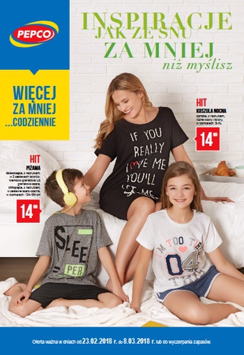 {loadposition linkPepco} 'Inspiracje jak ze snu za mniej niż myślisz' - nowa gazetka promocyjna sieci sklepów Pepco. Polecane promocje z gazetki Pepco: Koszula nocna damska z nadrukiem - 14,99 zł. Piżama dziewczęca lub chłopięca z nadrukiem - 14,99…