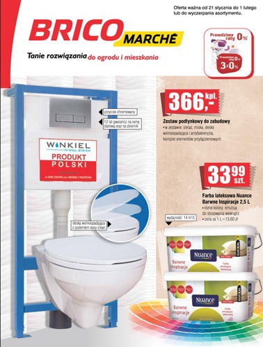{loadposition linkBricomarche} Nowa gazetka promocyjna Bricomarche. Polecane promocje z gazetki Bricomarche: Zestaw podtynkowy do zabudowy - 366 zł. Farba lateksowa Nuance Barwne Inspiracje 2,5 L - 33,99 zł. Plafon Rio - 14,99 zł. Oferta ważna od 21.01 do…