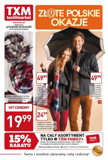 {loadposition linkTXM} Nowa gazetka promocyjna Textil Market - "Złote polskie okazje". Polecane promocje z gazetki Textil Market: Modny płaszcz damski z klapami - 49,99 zł. Kurtka męska ze stójką - 49,99 zł. Jegginsy damskie - 24,99 zł. …