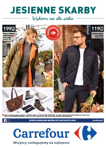 {loadposition linkCarrefour} 'Jesienne skarby - wybierz coś dla siebie' - nowa gazetka promocyjna sieci marketów Carrefour. Polecane promocje z gazetki Carrefour: Płaszcz damski - 199 zł. Kurtka męska - 119 zł. Bezrękawnik puchowy damski TEX - 99,99…