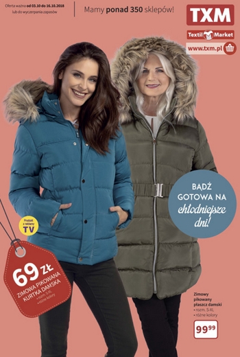 {loadposition linkTXM} 'Bądź gotowa na chłodniejsze dni!' - nowa gazetka promocyjna sieci sklepów Textil Market. Polecane promocje z gazetki Textil Market: Zimowa pikowana kurtka damska - 69 zł. Zimowy pikowany płaszcz damski - 99,99 zł. Płaszcz damski…