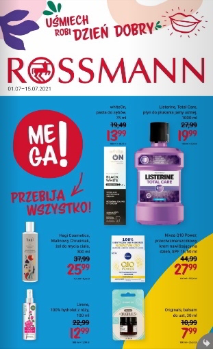 {loadposition linkRossmann} 'Mega! Przebija wszystko' - nowa gazetka promocyjna drogerii Rossmann. Polecane promocje z gazetki Rossmann: Pasta do zębów WhiteOn 75 ml - 13,99 zł. Płyn do płukania jamy ustnej Lirene Total Care 1000 ml - 19,99 zł. Żel…