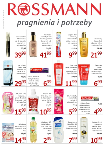 {loadposition linkRossmann} Nowa gazetka promocyjna drogerii Rossmann - "Pragnienia i potrzeby". Polecane promocje z gazetki Rossmann: Podkład do twarzy Max Factor Facefinity All Day Flawless 30 ml - 41,99 zł. Woda toaletowa dla kobiet Pret a Porter Classic 50…