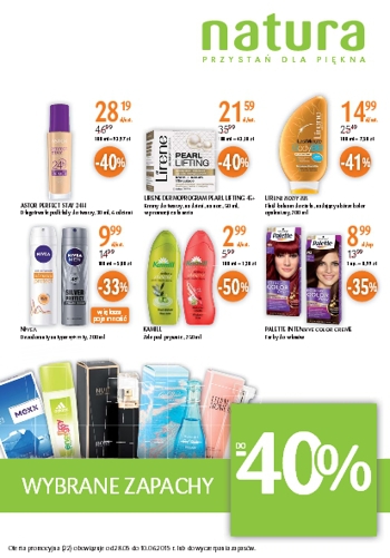 {loadposition linkNatura} Nowa gazetka promocyjna Drogerii Natura - "Wybrane zapachy do -40%". Polecane promocje z gazetki Drogerii Natura: Podkład do twarzy Astor Perfect Stay 24h 30 ml - 28,19 zł. Krem do twarzy Lirene Dermoprogram Pearl Lifting 45+ 50…