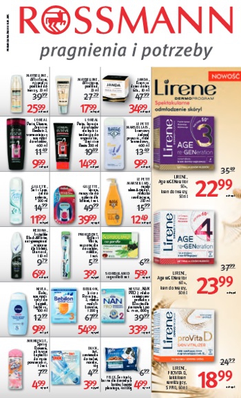 Nowa gazetka promocyjna drogerii Rossmann - "Pragnienia i potrzeby". Polecane promocje z gazetki Rossmann: Mineralny podkład do twarzy Maybelline AffiniTone - 27,99 zł. Puder do twarzy Maybelline - 19,99 zł. Szampon do włosów Nivea 400 ml - 8,99 zł.…