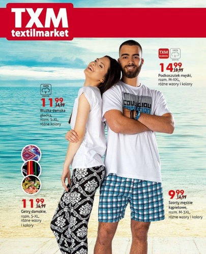 {loadposition linkTXM} Nowa gazetka promocyjna Textil Market - "Wyprzedaż do -70%". Polecane promocje z gazetki Textil Market: Podkoszulek męski - 14,99 zł. Bluzka damska - 9,99 zł. Szorty męskie - 19,99 zł. Oferta ważna od 2.07 do 14.07…