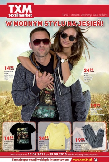 {loadposition linkTXM} Nowa gazetka promocyjna Textil Market - "W modnym stylu na jesień!". Polecane promocje z gazetki Textil Market: Bluzka damska - 24,99 zł. Podkoszulek męski - 14,99 zł. Spodnie damskie dresowe - 19,99 zł. Oferta ważna od…