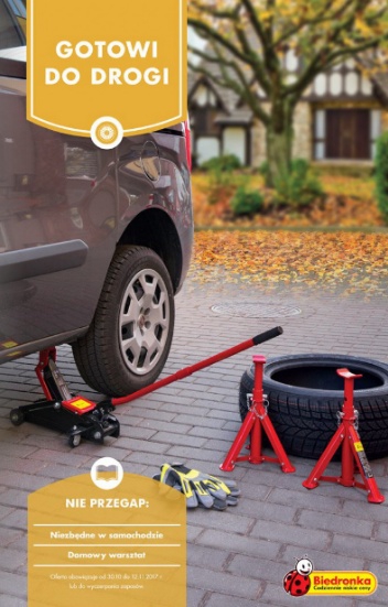 {loadposition linkBiedronka} Nowa gazetka promocyjna sieci sklepów Biedronka - "Gotowi do drogi". Polecane promocje z gazetki sieci Biedronka: Podnośnik hydrauliczny - 79,90 zł. Podpory samochodowe - 39,99 zł. Pompka nożna dwutłokowa z manometrem - 29,99 zł. …