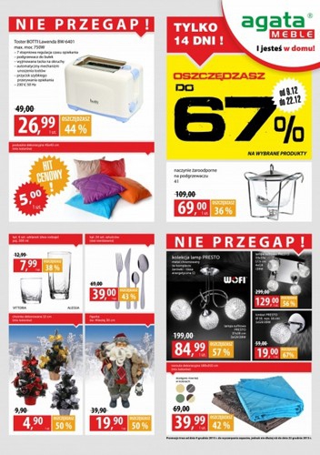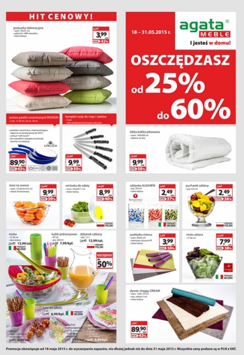 {loadposition linkAgata} Nowa gazetka promocyjna salonów meblowych Agata z artykułami wyposażenia wnętrz. Polecane promocje z gazetki Agata: Lampa wisząca Diamond - 39,90 zł. Narzuta Iga - 19,99 zł. Poduszka dekoracyjna - 8,99 zł. Oferta ważna od 6.03 do…