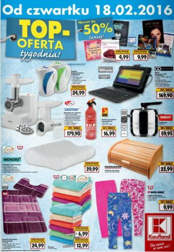 {loadposition linkKaufland} Nowa gazetka promocyjna marketu Kaufland. Polecane promocje z gazetki Kaufland: Regał metalowy - 39,99 zł. Poduszka ergonomiczna - 39,99 zł. Blender Zelmer 300 W - 49,99 zł. Oferta ważna od 4.08 do wyczerpania zapasów.
