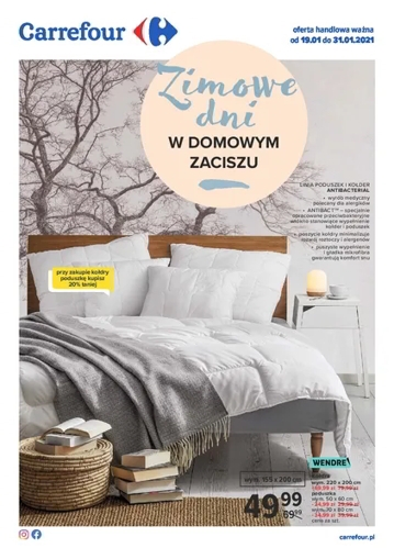{loadposition linkCarrefour4} 'Zimowe dni w domowym zaciszu' - nowa gazetka promocyjna sieci marketów Carrefour. Polecane promocje z gazetki Carrefour: Kołdra Wendre 155x200 cm - 49,99 zł. Poduszka ortopedyczna Aloe Vera 40c60 cm - 29,99 zł. Poduszka biała 40x40 cm…