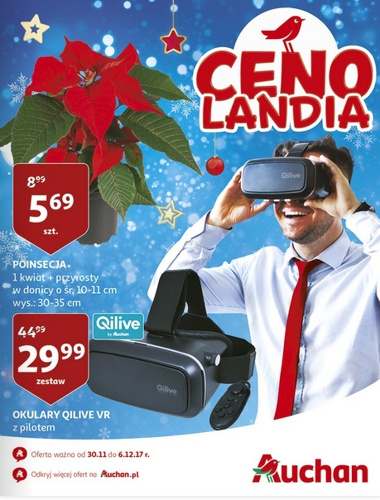 {loadposition linkAuchan} Nowa gazetka promocyjna Auchan - "Cenolandia". Polecane promocje z gazetki Auchan: Poinsecja - 5,69 zł. Okulary Qilive VR z pilotem - 29,99 zł. Mandarynki 1 kg - 2,99 zł. Zakupy w Auchan przez internet! Pobierz…
