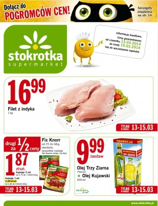 Nowa gazetka promocyjna sieci handlowej Stokrotka. Polecane promocje z gazetki Stokrotka: Filet z indyka 1 kg - 16,99 zł. Kabanos klasyczny wieprzowy Tarczyński 1 kg - 24,99 zł. Polędwica sopocka 1 kg - 13,99 zł. Ponadto akcja…