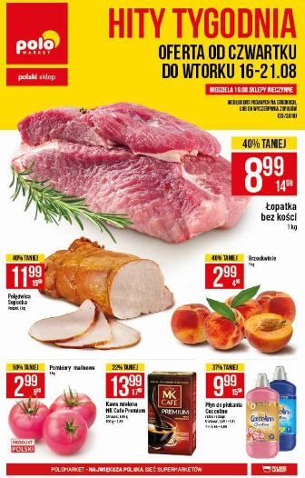 {loadposition linkPoloMarket} 'Hity tygodnia' - nowa gazetka promocyjna sieci sklepów Polo Market. Polecane promocje z gazetki Polo Market: Łopatka bez kości 1 kg - 8,99 zł. Polędwica sopocka Pekpol 1 kg - 11,99 zł. Brzoskwinie 1…