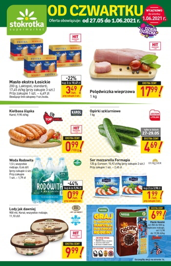 {loadposition linkStokrotka} Nowa gazetka promocyjna sieci sklepów Stokrotka. Polecane promocje z gazetki Stokrotka: Masło ekstra Łosickie Laktopol 3x200 g - 10,47 zł. Polędwiczka wieprzowa 1 kg - 17,99 zł. Kiełbasa śląska Karol 1 kg - 9,99 zł. …