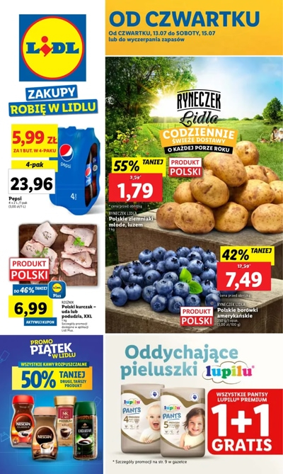 {loadposition linkLidl2} 'Od czwartku' - nowa gazetka promocyjna sieci sklepów Lidl. Polecane promocje z gazetki sklepów Lidl: Polskie ziemniaki młode Ryneczek Lidla 1 kg - 1,79 zł. Polskie borówki amerykańskie Ryneczek Lidla 250 g - 7,49 zł. Pepsi 2…
