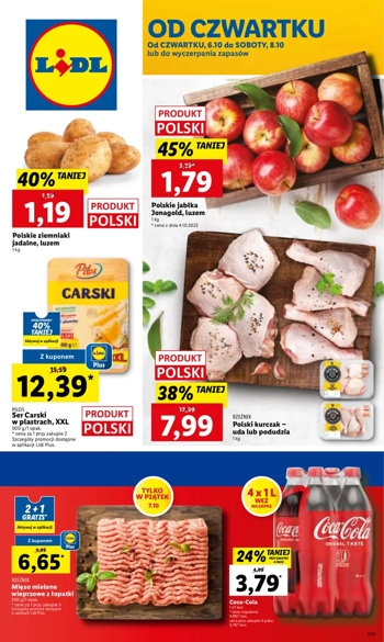 {loadposition linkLidl2} 'Od czwartku' - nowa gazetka promocyjna sieci sklepów Lidl. Polecane promocje z gazetki sklepów Lidl: Polskie jabłka Jonagold 1 kg - 1,79 zł. Polskie ziemniaki jadalne 1 kg - 1,19 zł. Ser Carski w plastrach Pilos 500…