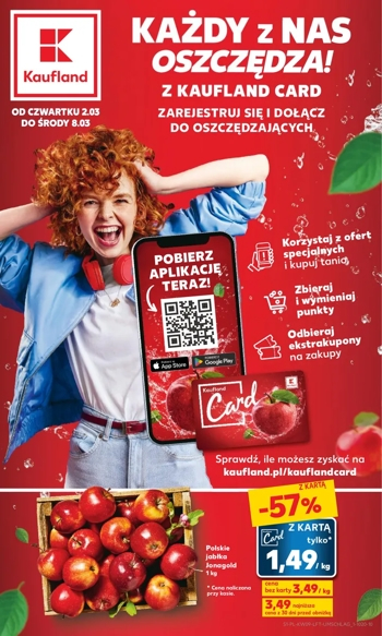 {loadposition linkKaufland} 'Każdy z nas oszczędza z Kaufland Card' - nowa gazetka promocyjna sieci marketów Kaufland. Polecane promocje z gazetki Kaufland: Polskie jabłka Jonagold 1 kg - 1,49 zł*. Filet z piersi polskiego kurczaka 1 kg - 14,99 zł**.…
