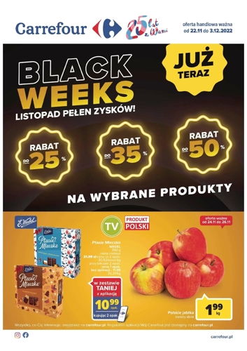 {loadposition linkCarrefour3} 'Black Weeks. Listopad pełen zysków!' - nowa gazetka promocyjna sieci marketów Carrefour. Polecane promocje z gazetki Carrefour: Ptasie mleczko Wedel 360 g - 10,99 zł*. Polskie jabłka 1 kg - 1,99 zł**. Żwirek silikonowy dla kota Carrefour…