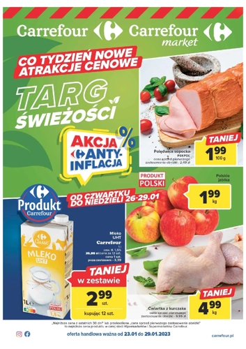 {loadposition linkCarrefour} 'Targ świeżości. Co tydzień nowe atrakcje cenowe' - nowa gazetka promocyjna sieci marketów Carrefour. Polecane promocje z gazetki Carrefour: Polędwica sopocka Pekpol 100 g - 1,99 zł. Mleko Carrefour 1 L - 2,99 zł*. Polskie jabłka -…