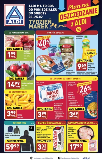 {loadposition linkAldi2} 'Plan na oszczędzanie z Aldi' - nowa gazetka promocyjna sieci sklepów Aldi. Polecane promocje z gazetki Aldi: Polskie jabłka 1 kg - 1,99 zł. Pomidory malinowe 1 kg - 14,99 zł. Masło ekstra Mleczna Rzeka 200 g…